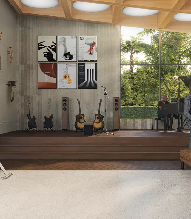 חדרי מוזיקה, גיימינג וקולנוע, מטבח אירוח פתוח, לאונג’ מסוגנן